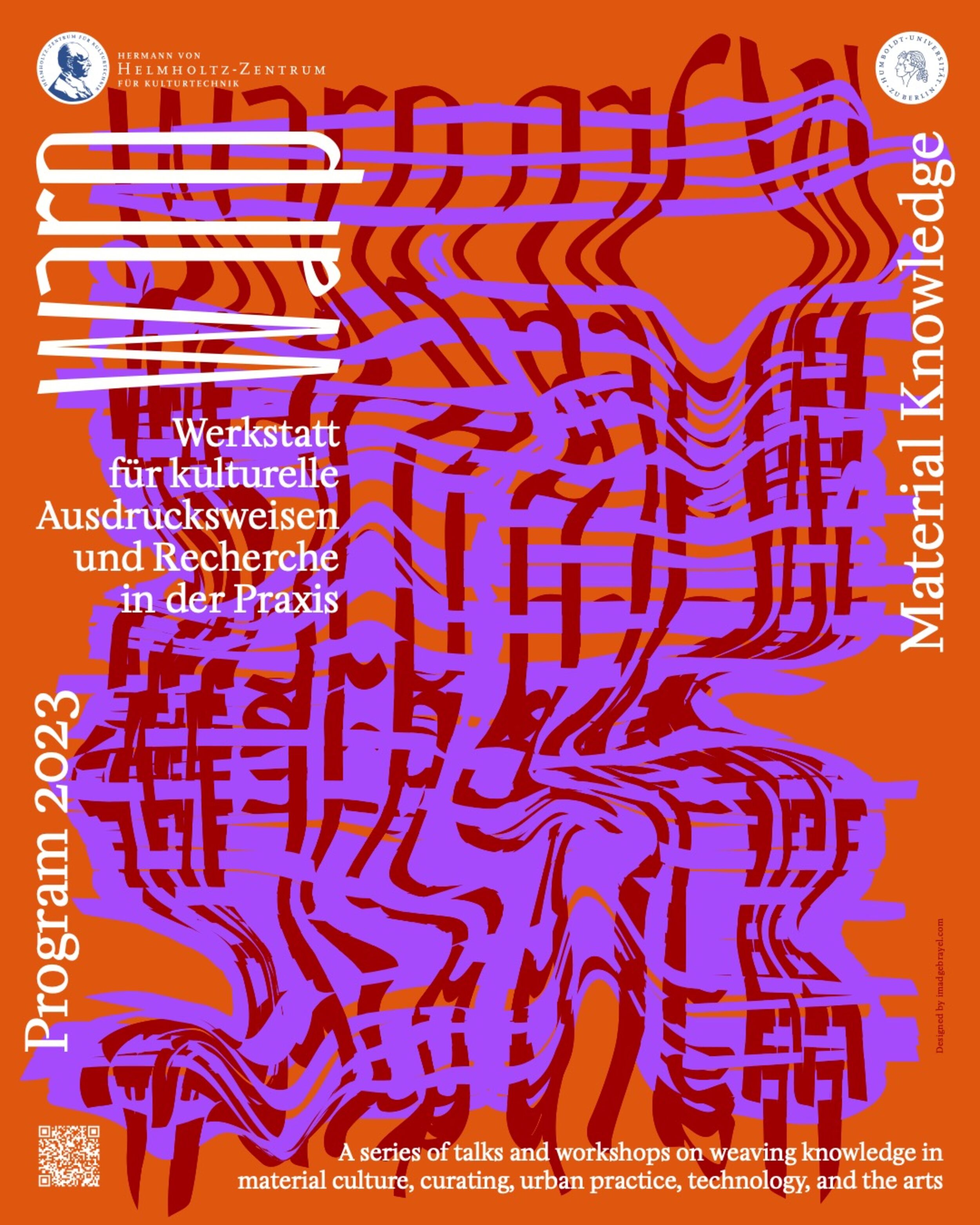 The weekly event series WARP - Werkstatt für kulturelle Ausdrucksweisen und Recherche in der Praxis addresses the relations and linkages of knowledge in research on material culture, curation, technology, and art through lectures and workshops. The series is open to students and scientists. The talks and workshops will explore diverse forms of material knowledge in research, material culture, curation, technology, and art. Highlighting multimodal forms of knowledge-making, the series will focus on weaving, textural knowledge, and the textility of making.