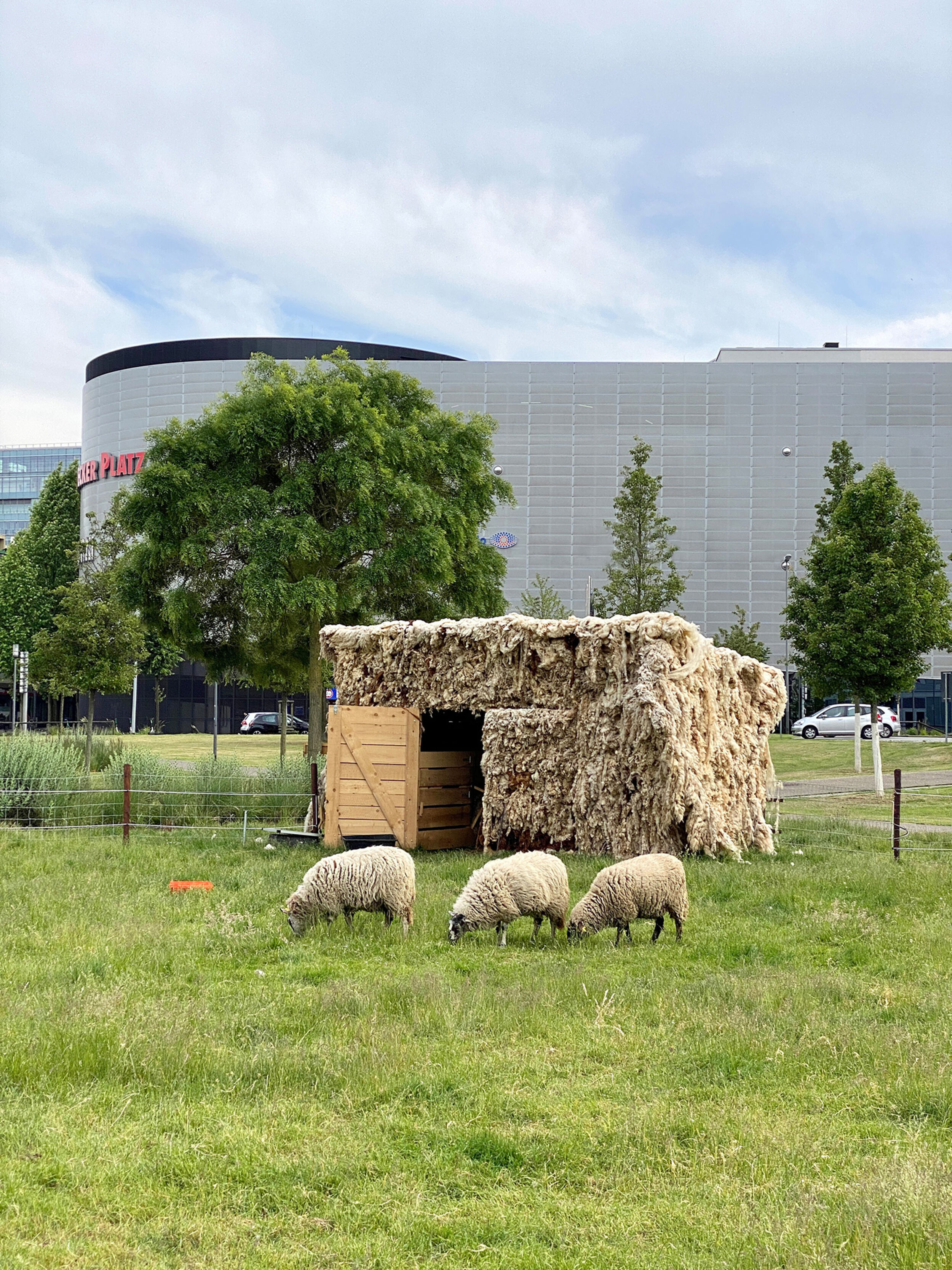 Raw wool – an underestimated resource! In the workshop within the exhibition An Example to Follow!, organized byn Folke Köbberling, Natalija Miodragović, Stella Maxeiner und Andrija Mihailovic, insulation materials against noise, cold and dirt are made. The raw materials sheep’s wool and clay are processed into protective walls against noise and exhaust fumes for Tempelhofer Feld.