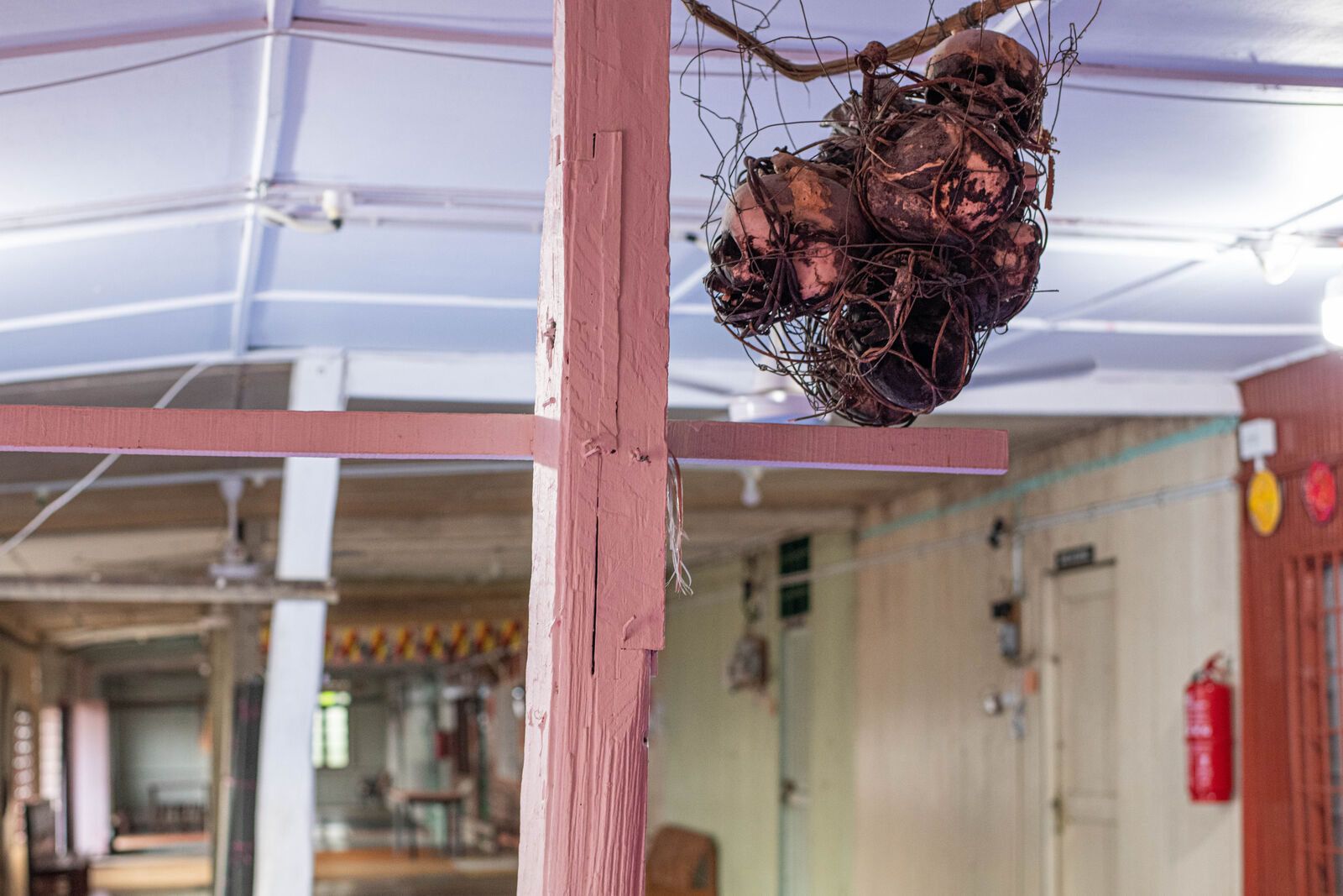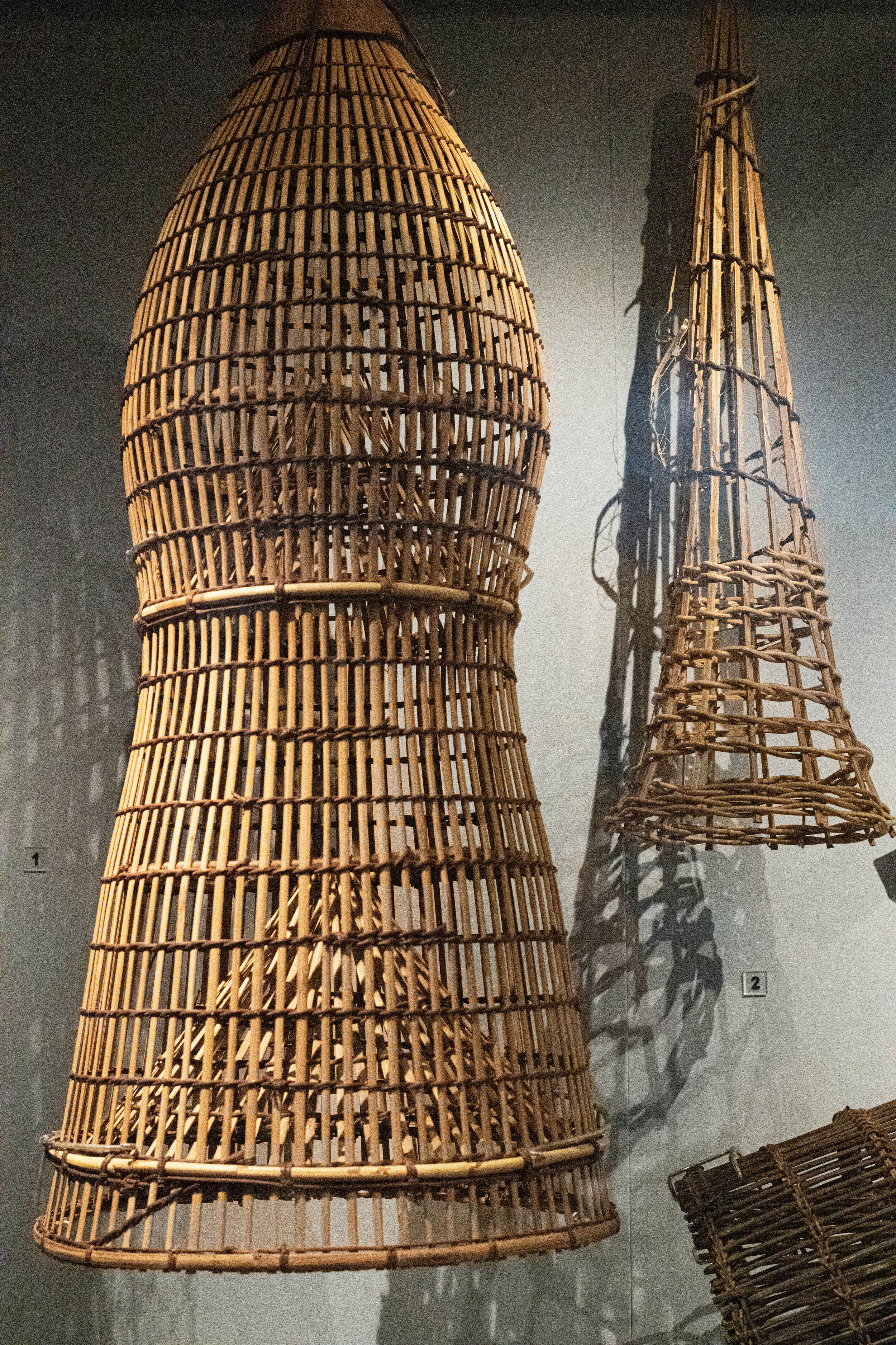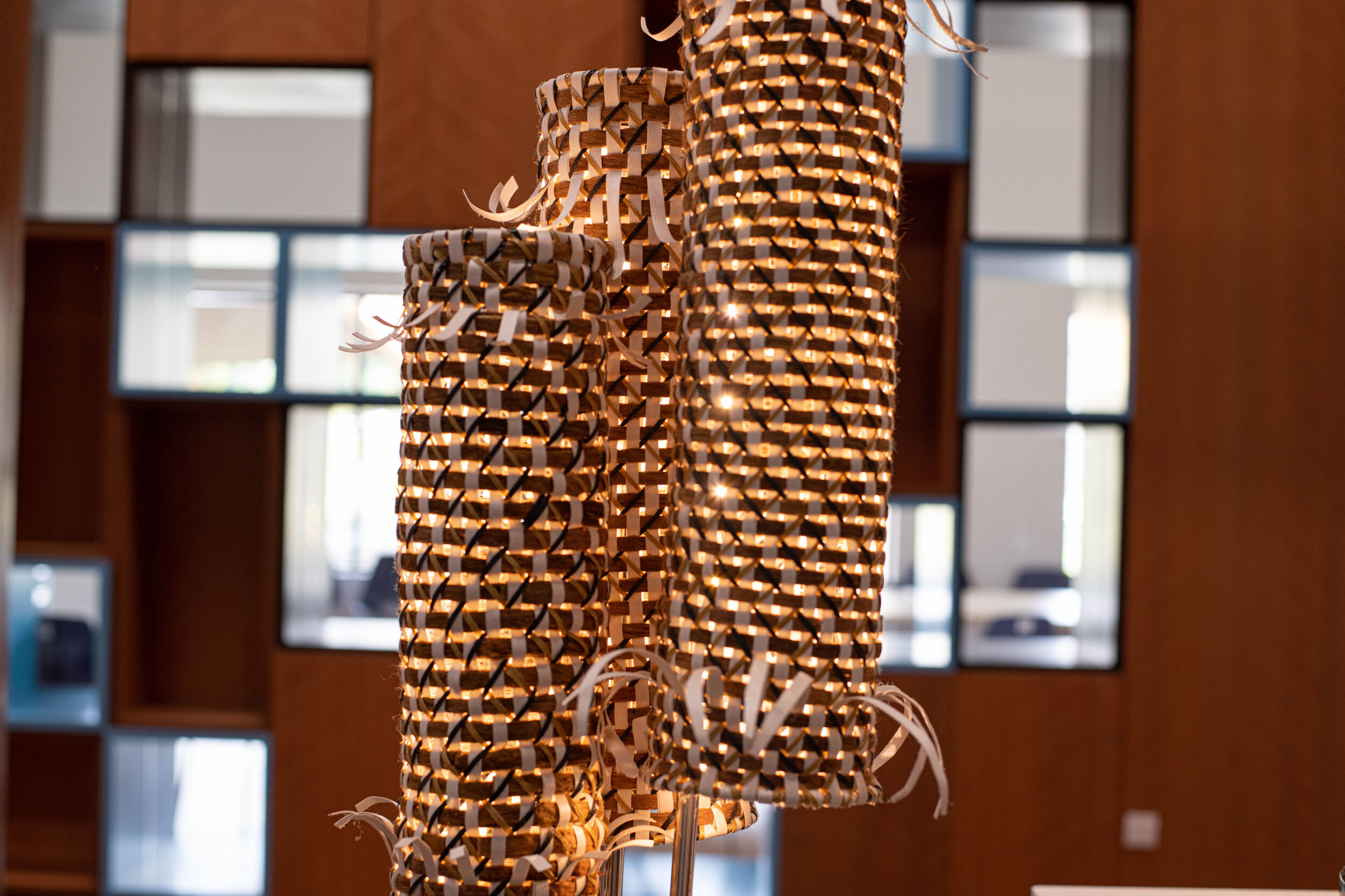 The trip began in Kuching, the capital of the Malaysian state of Sarawak in Borneo. Fortunately, the Borneo Cultures Museum there, the second largest museum in Southeast Asia, was currently hosting the temporary exhibition Serumpun: Crafts Across Borders as part of the »Cultural Assets and Vernacular Materials« program. This project of the Glasgow School of Arts with the Borneo Library showed the intertwining of ecosystem, craft practices, and materials using indigenous communities from Kalimantan, Sarawak, and Sabah as examples. Of particular interest in the cluster, context were lampshades made by designer Rosemarie Wong using traditional weaving techniques from Betong, Sarawak, but combining old and new materials. Due to rising sea levels, many natural materials are expected to become unavailable in the future. By interweaving different materials, they can be tested for their properties in the production process, but also in new contexts of use, before this comparison may no longer be possible. Diana Rose is also taking a similar approach with Batik Linut, using sago to create patterns for batik fabrics, a natural food, allowing communities to produce a marketable product.