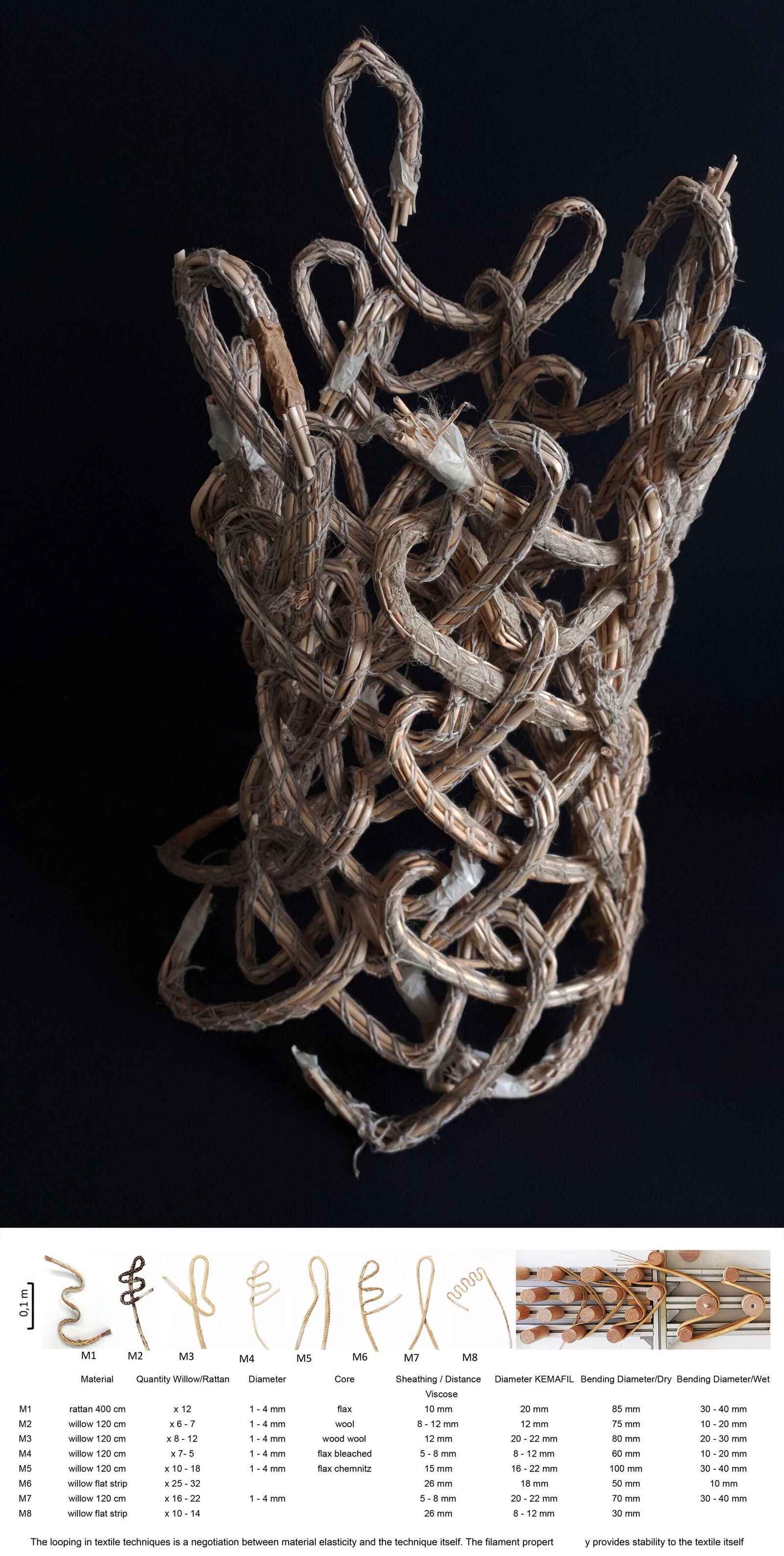 Plektonik Structural Textiles column – continuous wooden ›Active Yarns‹ 40 mm diameter loops. Copyright: Daniel Suárez & Natalija Miodragović
