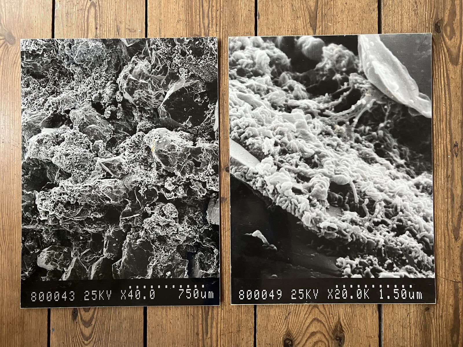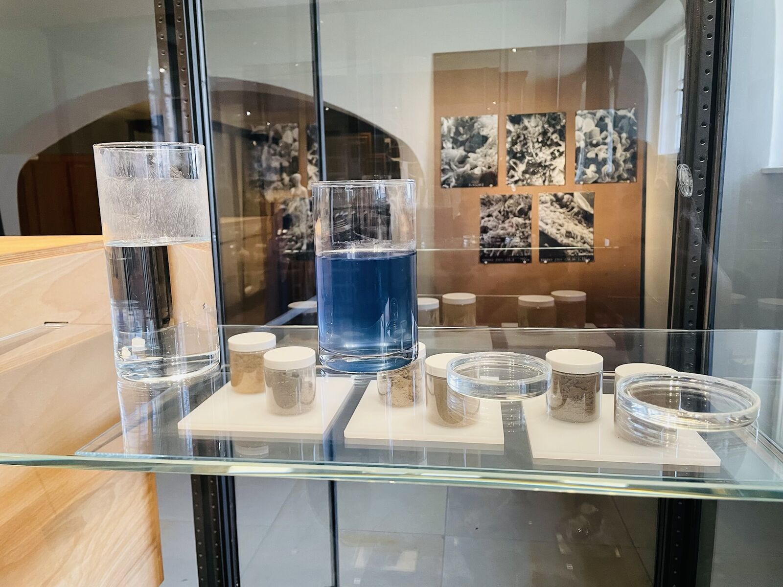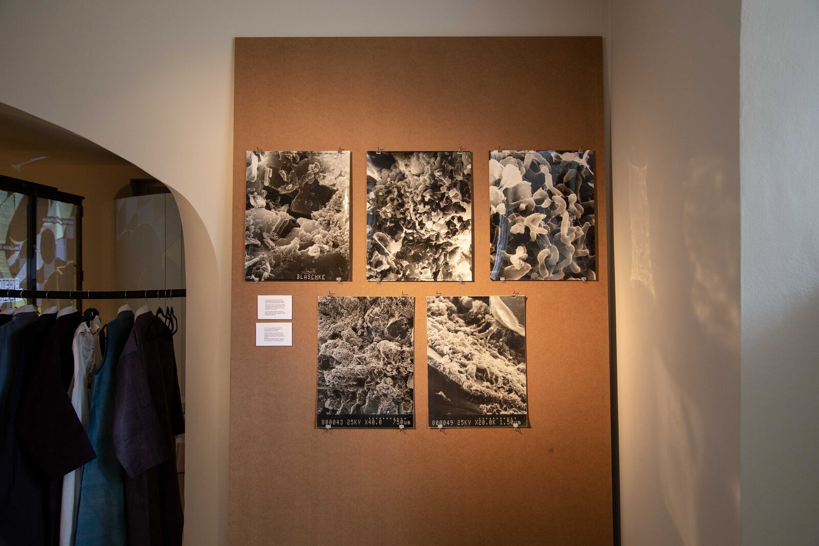 2) Through conversations with visitors, the exhibition evolved over time and was expanded to include two contributions that addressed the question of the boundaries between living and dead matter. The Scanning electron micrographs of geological processes by Prof. Rochus Blaschke (1930-2019) were one of the first magnifications of weathering stones produced in Europe in the 1980s.