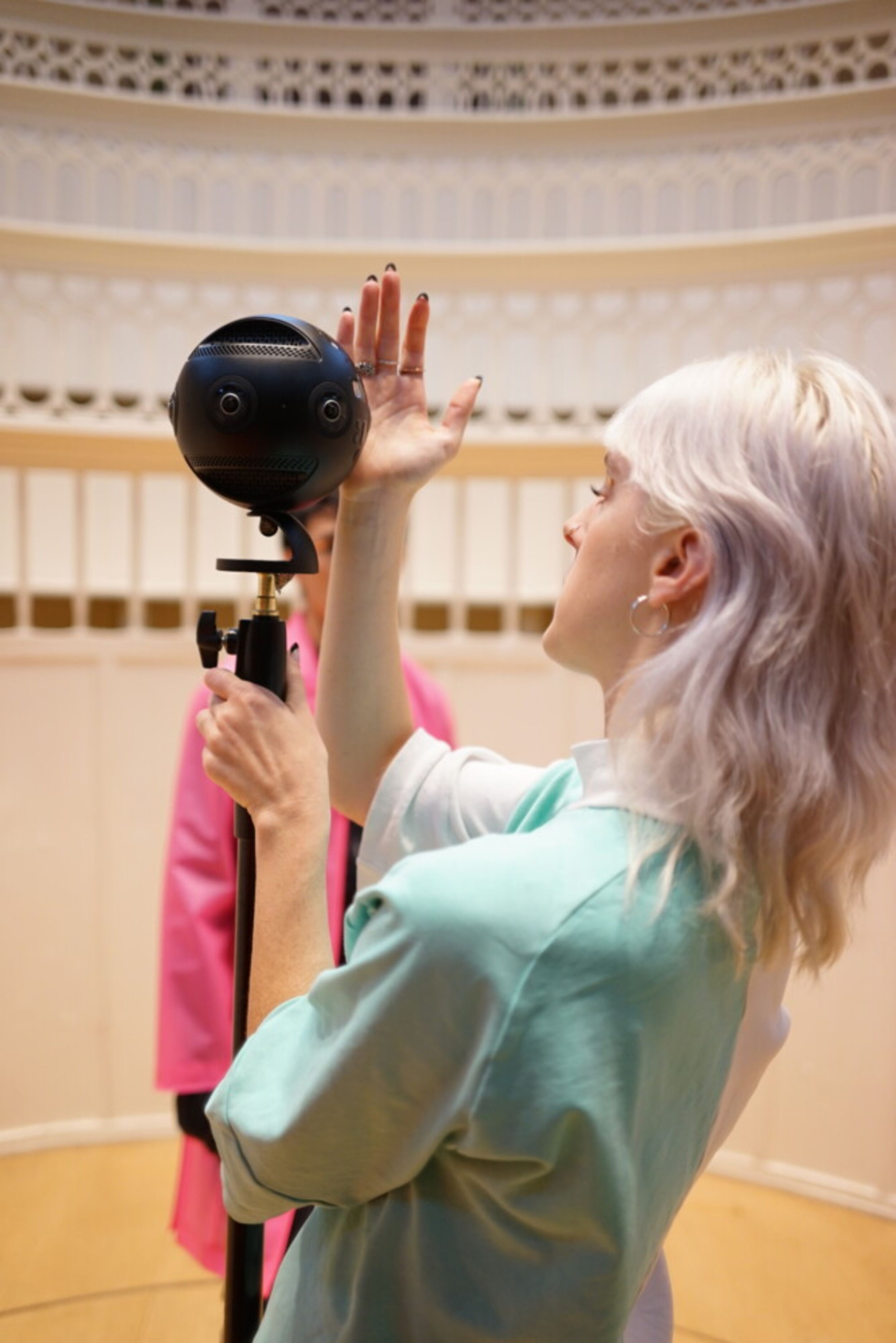 Our team used the Insta360 Pro camera together with the Rokoko motion capture suit to record sequences of choreography alongside live 360° footage. We integrated this real-world footage with a virtual model of the theater that was specially designed for the performance. Paar was shot as a 6K stereoscopic recording.