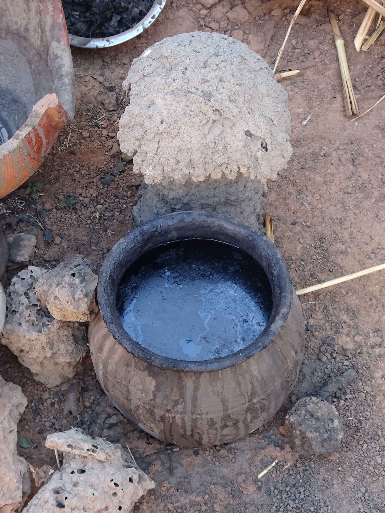 Like every macro-organism or macro-object, also the Vouwo mud-dyeing vat is associated with a rich microbial community or microbiome that originates from river mud and termite soil used in the dyeing process. While some of the dark color is generated by the chemical reaction between the tannins present in the added plant materials and the iron ore, also anaerobic soil bacteria contribute by developing – in their energy metabolism – iron sulfide, precipitating as a dark color on the fabric. However, some bacteria such as the aerobic soil bacterium Bacillus subtilis, and potential fecal contaminants such as human Escherichia coli can form large aggregates – termed biofilms – on the surface of the dyeing vat and on the fabric, which prevents the dyeing of the textile. This can be counteracted by adding higher amounts of the pods of the plant Acacia nilotica, which has led us to show that this plant contains compounds that act as powerful anti-biofilm agents. This finding is also consistent with its traditional use in treating chronic infections caused by bacterial biofilms.
